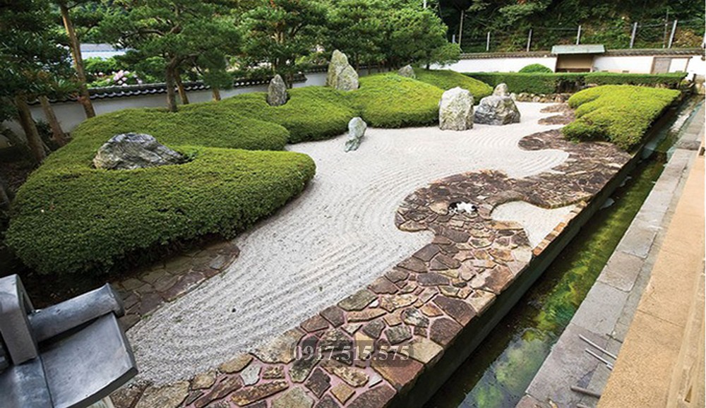 Loại hình này thường được thực hiện trên nền cát nhuyễn hoặc những khoảng sân vườn có trải sỏi trắng và sử dụng những pho đá có nhiều hình thù đẹp mắt nói nên những ý nghĩa mà chủ nhân muốn nói để hóa những phiến đá vô hồn này thành những linh hồn.