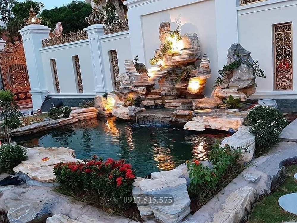 – Theo quan niệm phong thủy, sông hồ, núi non phải giao hòa với trời đất thì mới hợp lẽ tự nhiên. Cho nên chỉ có thể đặt chúng ở ngoài vườn hoặc ngoài sân. Hợp lý nhất là đặt ở gốc sân đúng theo các hướng chính Bắc, chính Đông, Đông Nam.